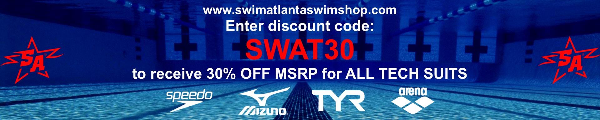 SwimAtlanta Swim Shop during the meet this saturday will be doing a sale. 20% off MSRP for everything in the shop this Saturday only. Practice suits are 30% off lowested ticketed price. SwimAtlanta T-Shirts for only $5.00.
